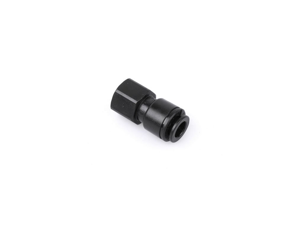 JG quick connector with a 1/4" internal thread and an outlet for a 6mm hose.
