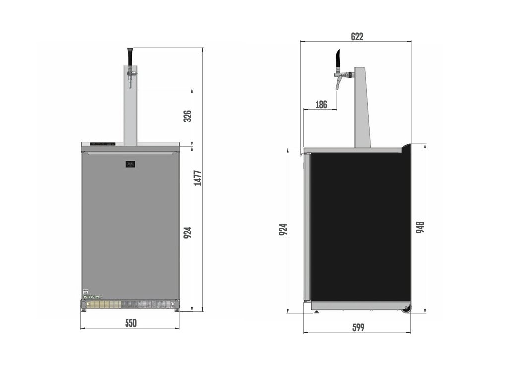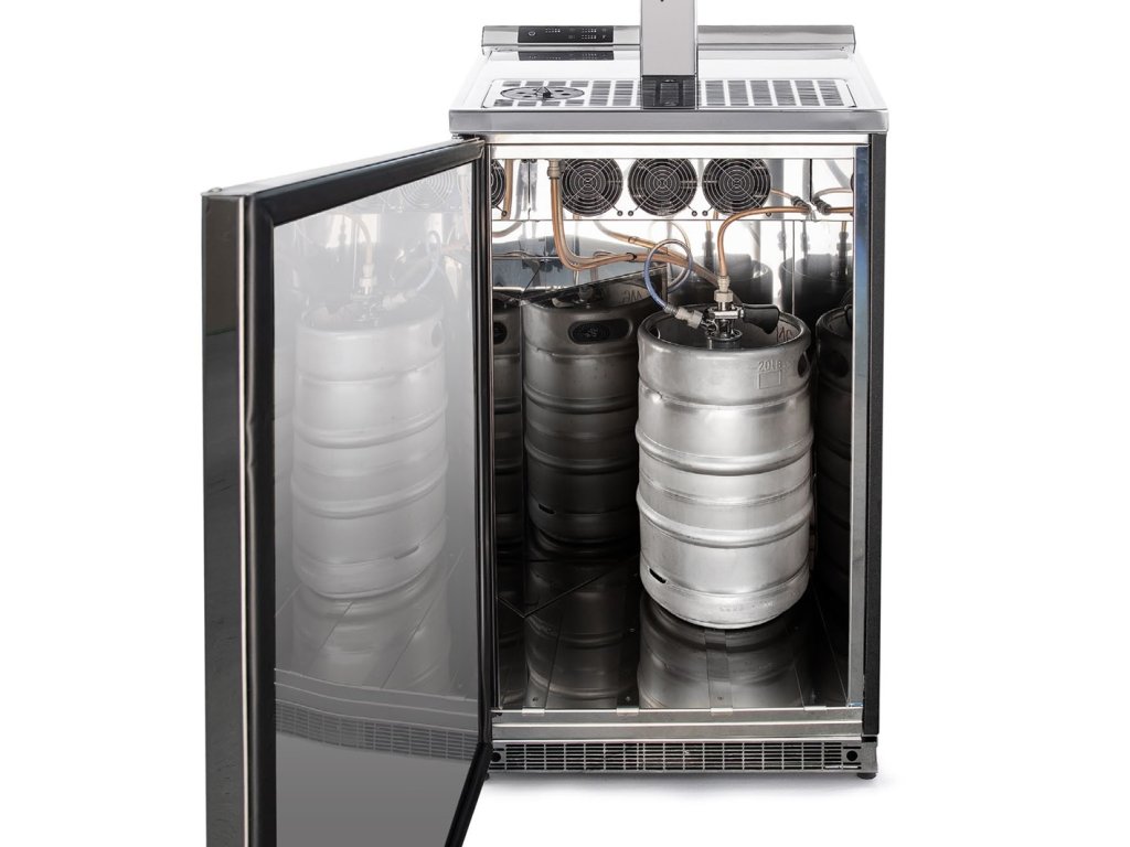 - When used as a standalone kegerator, its clean stainless steel design allows for full-surface branding. The rear panel can optionally be equipped with an illuminated promotional display.