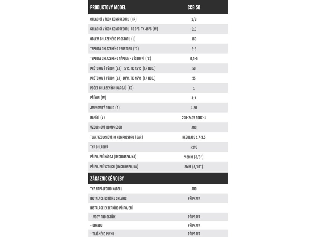 The Combi Cold Bar 50 is a professional keg refrigerator – a kegerator that combines chamber cooling and flow-through cooling in one compact unit. It is equipped with a single European-style beer tap featuring an ergonomic ERGO handle, making it ideal for serving beer and other beverages in restaurants, bars, taprooms, or small breweries. With its intelligent design and attention to detail, it delivers stable performance, maximum beverage quality and shelf life, and exceptionally easy operation.