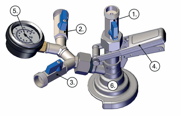 - When the keg is pressurized close the valve no.2. Then open valve no.1.