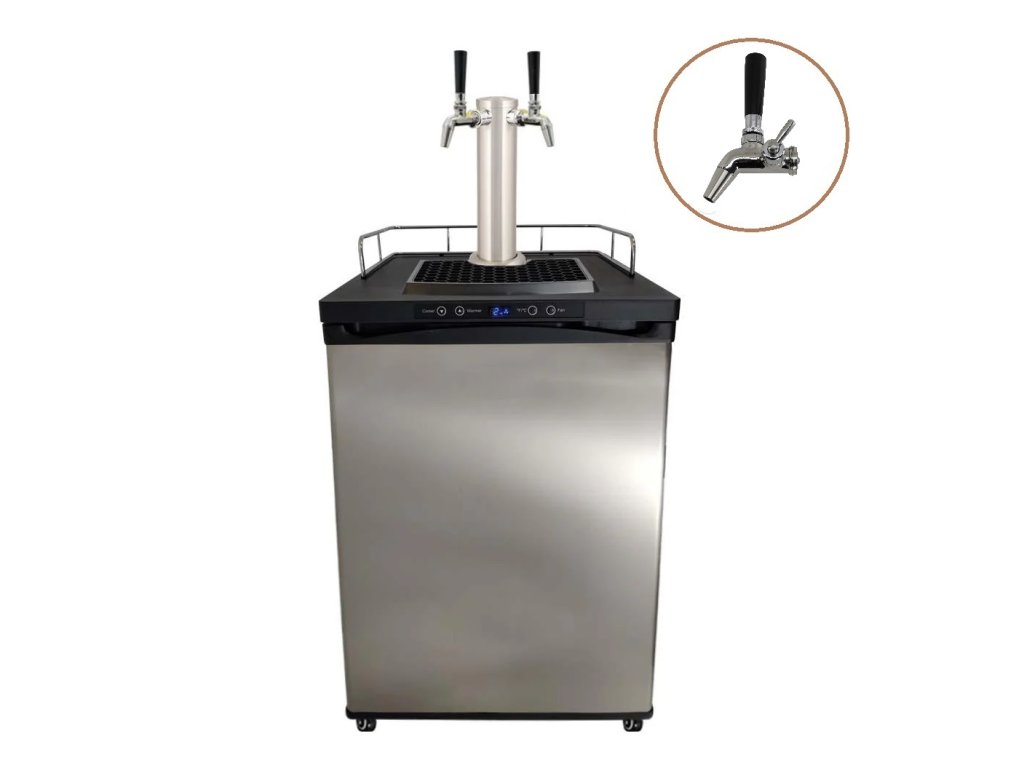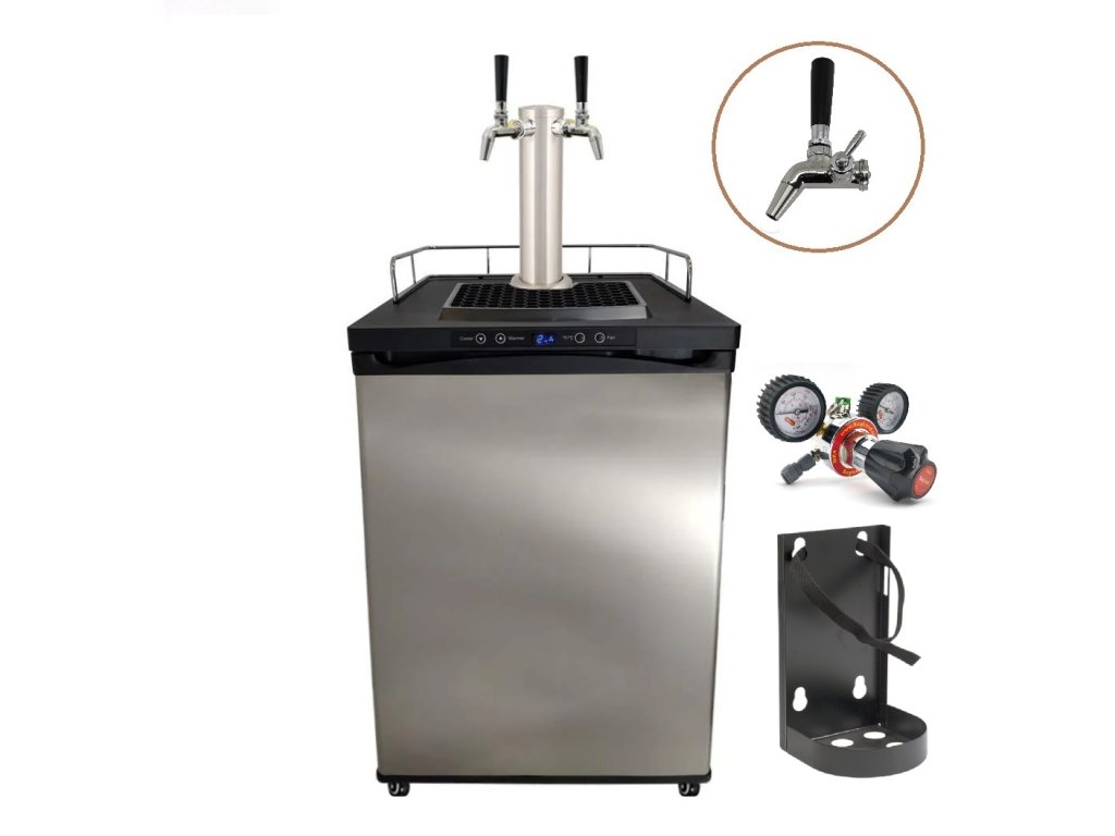 Kegerátor KEGBOX.4 Vám zajistí dokonalé osvěžení na oslavách, grilovačkách či posezeních s rodinou a přáteli. Výčepní zařízení je primárně určeno pro čepování piva, ale stejně tak ho můžete využít i pro víno, sodovku či nealkoholické limonády. Do prostorné lednice "vměstnáte" až 4 kyvety, anebo standardní sud do velikosti 50 litrů. Díky digitálnímu termostatu je ideální nejen pro chlazení a následné čepování piva, ale i pro jeho kvašení a zrání. Teplotu uvnitř lednice lze jednoduše regulovat na panelu nad dvířky bez nutnosti jejího otevírání. Další předností kegerátoru je osazení výčepním stojanem s celonerezovými výčepními kohouty s kompenzátorem, díky kterým si můžete regulovat pěnivost čepovaného nápoje. Kegerátor se dodává přímo se všemi potřebnými připojovacími hadicemi a rychlospojkami pro snadnou instalaci.