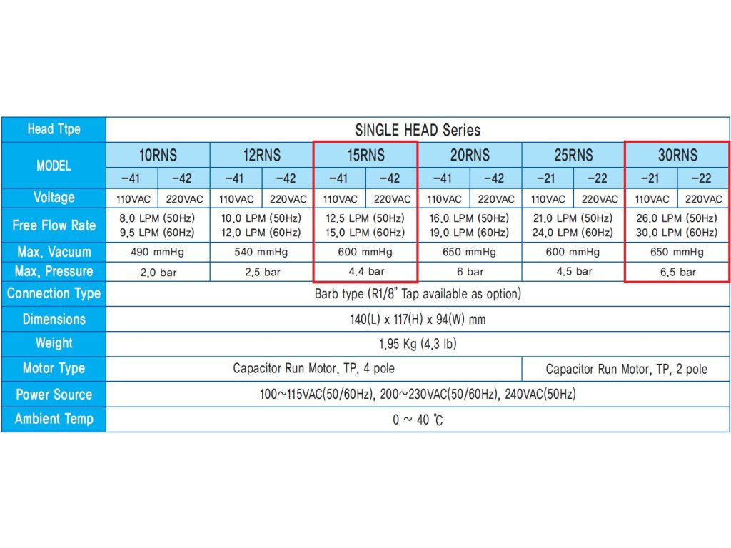 Max. tlak/vacuum: 4,4 bar/ 600mm (-0,8 bar)