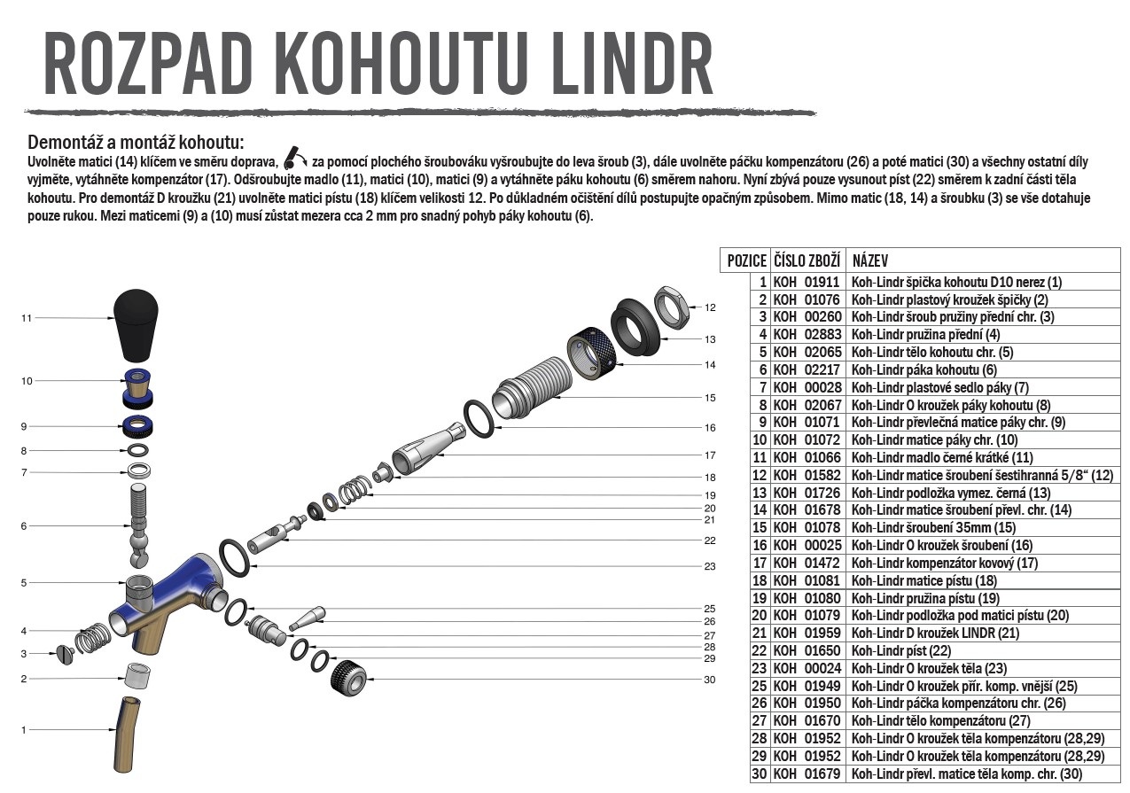 Náhradní díly pro běžně používané výčepní kohouty na pivo, vhodné pro modely značek Lindr, Bahnik, Nukatap, Intertap, Baroko, Nostalgie, Global a další. V nabídce najdete převlečná matice, pružiny, kompenzátory, ovládací páky a jiné díly.