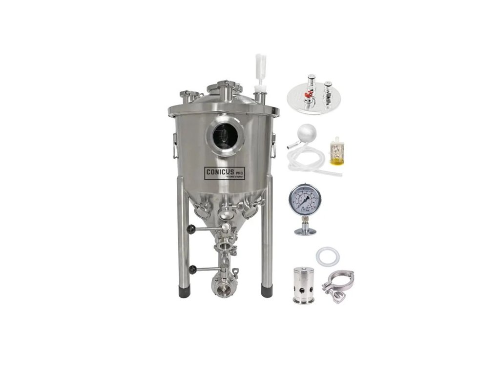 Nerezový CK tank Conicus pro o objemu 30l včetně tlakovací sady je kompletní balíček pro pivovarníky, kteří chtějí kvasit pod tlakem. Základ tvoří nerezová fermentační nádoba Conicus Pro 30l s kónickým dnem s kuželem pod úhlem 60 stupňů, která umožňuje snadné odstřelení kvasnic a snadné stáčení piva.