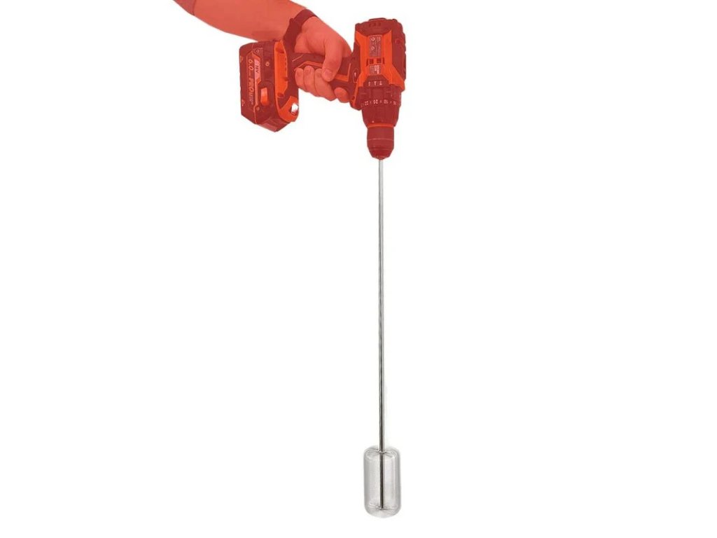 - Použití je velmi jednoduché – metlu stačí pevně upnout do vrtačky pomocí 1/4" šestihranného dříku a pomalu promíchat rmut.