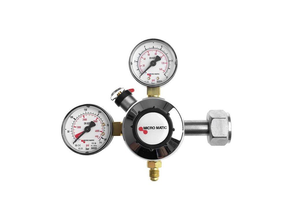 Redukční ventil CO2 Micro Matic na lahve s CO2. Snadné nastavení tlaku pomocí čelního ovladače bez nutnosti použití jakéhokoli nářadí.