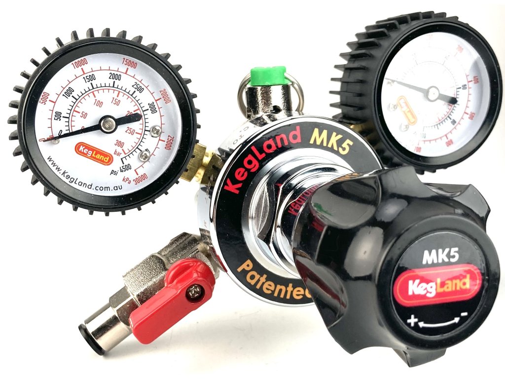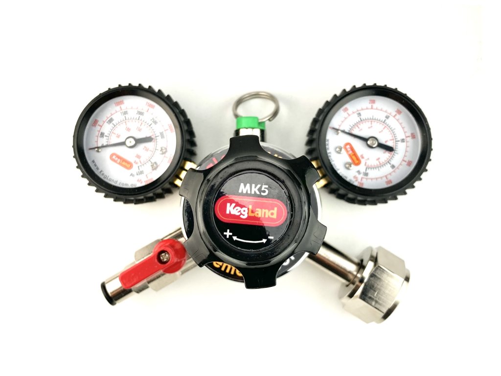 Redukční ventil MK5 CO2 G3/4 KegLand s ručním ovladačem tlaku pro přesné a stabilní nastavení tlaku. Tato verze je vybavena převlečnou maticí se závitem G3/4.