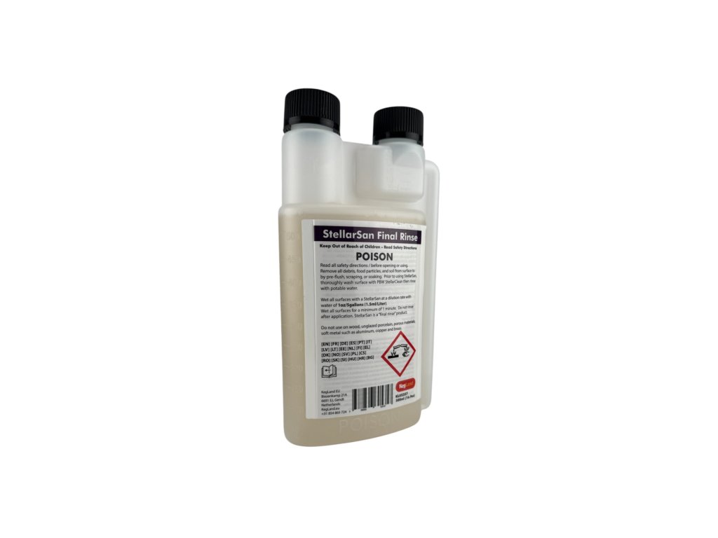 StellarSan je 100% potravinářský bezoplachový sanitační prostředek, ze kterého připravíte až 500 litrů roztoku. Láhev je vybavena praktickou odměrnou komorou – stačí ji zmáčknout a jednoduše si odměříte potřebné množství.