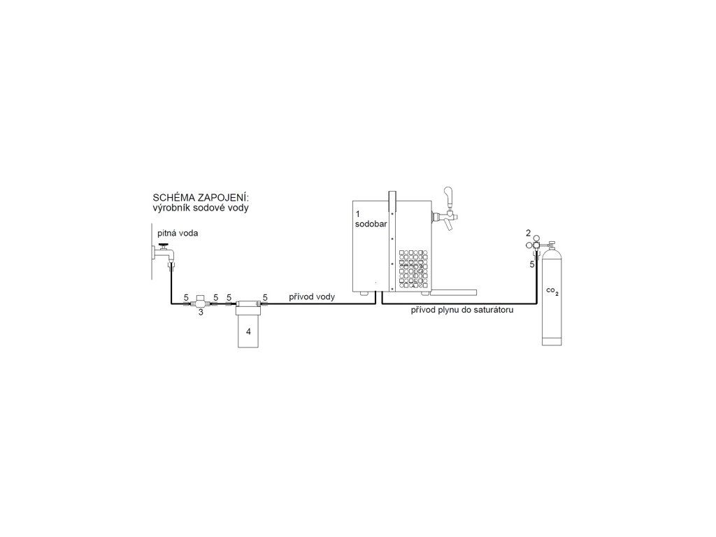 - voda - vodovodní řád - připojení na kohoutek se závitem 1/2"; (nejlépe do 5m od sodobaru), voda na vstupu musí splňovat kritéria tlaku a kvality
