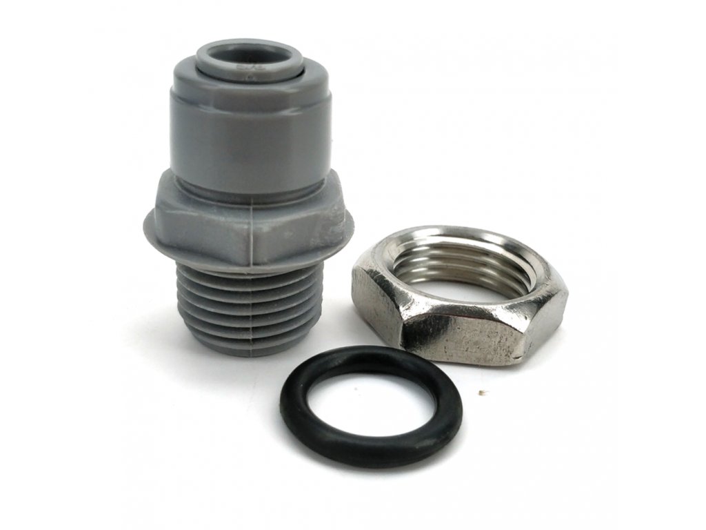 DuoTight průchodka s maticí s vnějším závitem 1/2" je určena pro připojení hadice o vnějším průměru 9,5 mm (3/8"), vhodná například pro chladící smyčku do Fermzilly.